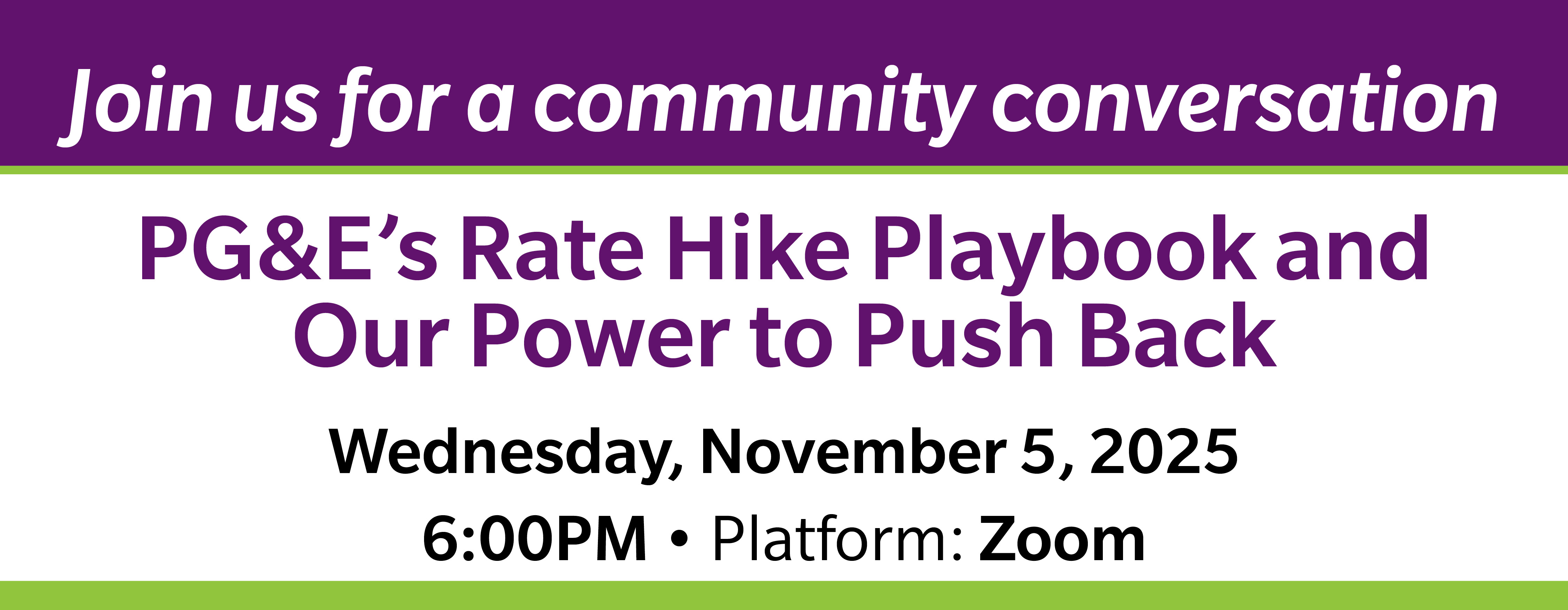 Join us for a powerful Zoom conversation to unpack PG&E’s newest proposal, understand what’s at stake at the CPUC (California Public Utilities Commission), and learn how you can take action to stop the greed and protect our communities.
